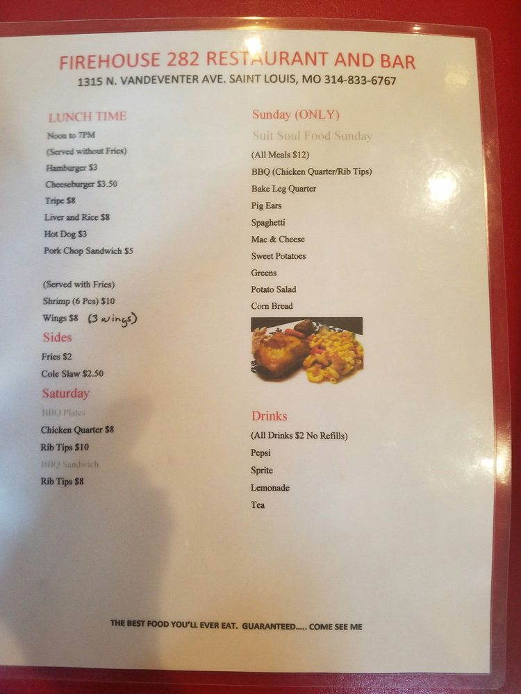 Firehouse 282 Menu